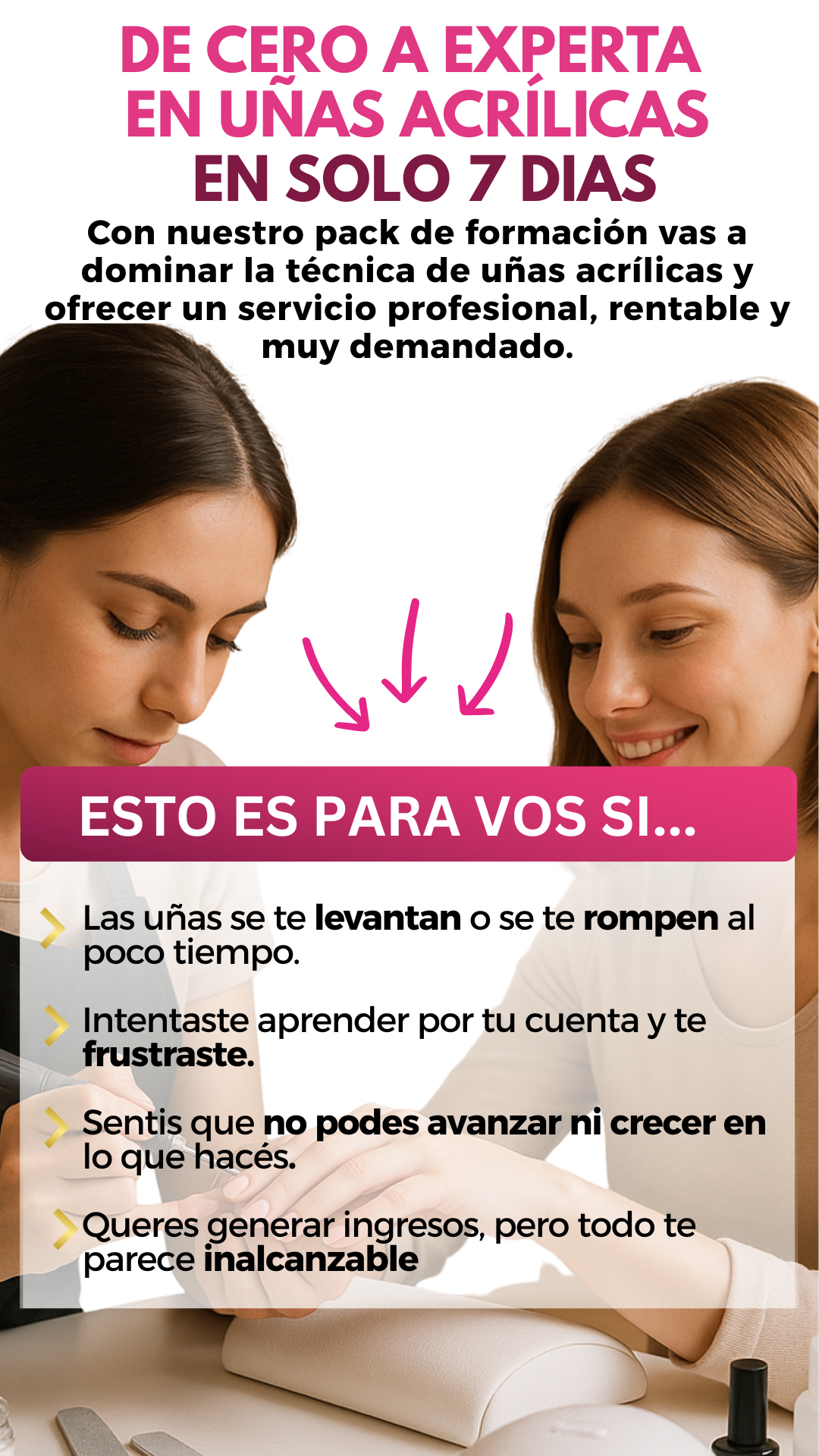 Es un pack digital completo que incluye eBooks en formato PDF + video demostrativo, donde vas a aprender desde los fundamentos hasta la aplicación profesional de las uñas esculpidas. 💅✨ Técnicas, materiales, estructura, limado, encapsulado, construcción paso a paso, mantenimiento, errores más comunes, protocolos profesionales ¡y mucho más! Todo explicado de forma clara y visual para que puedas formarte como manicurista profesional y ofrecer servicios con resultados de salón..